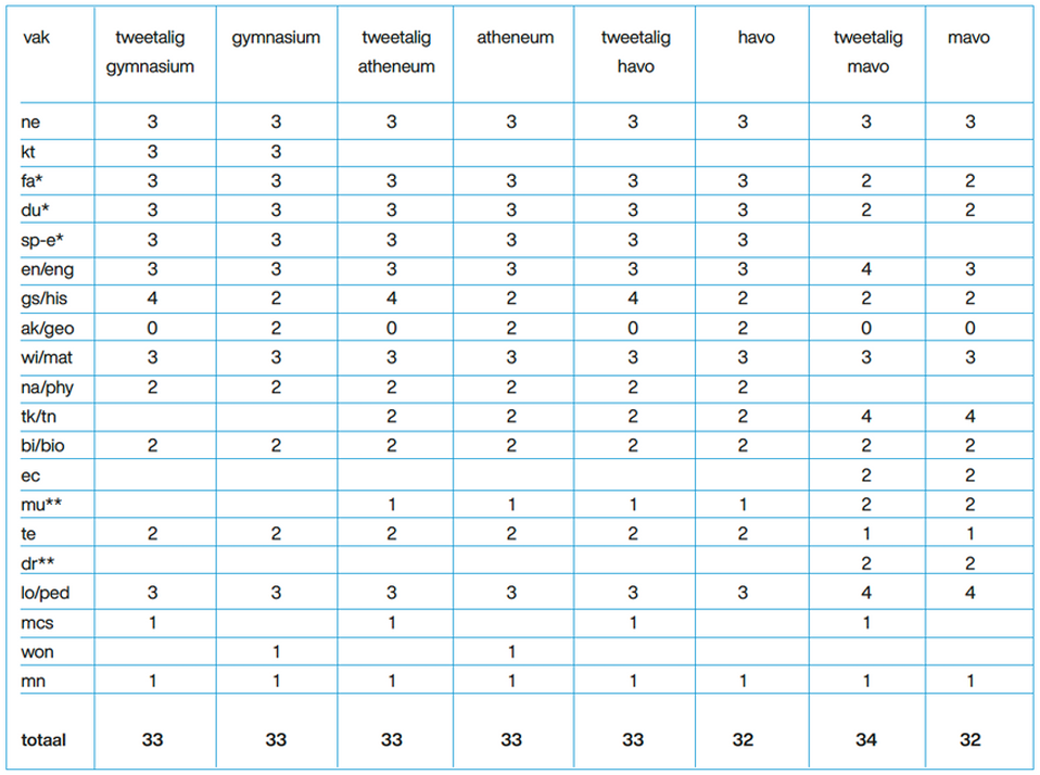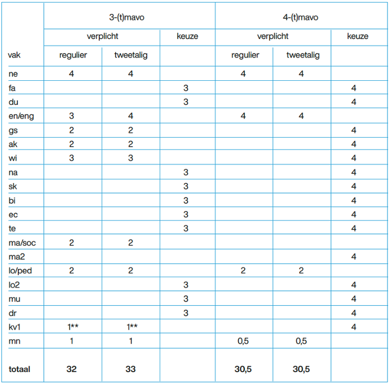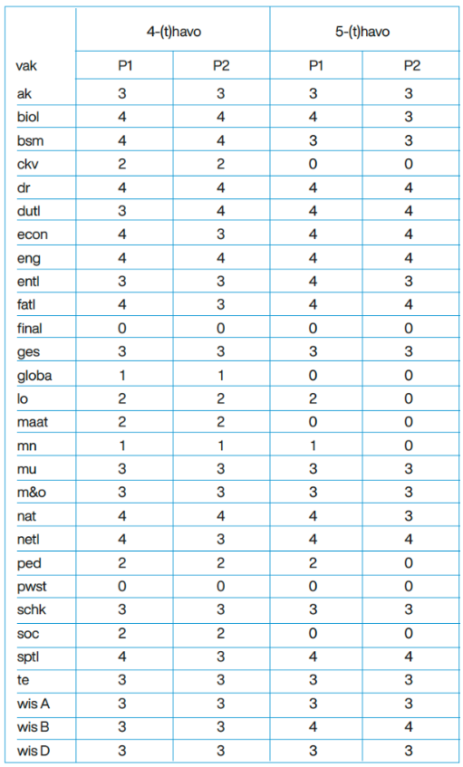 Lessentabel leerjaar 3 en 4-(t)mavo