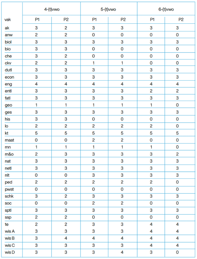 Lessentabel leerjaar 4, 5 en 6-(t)vwo