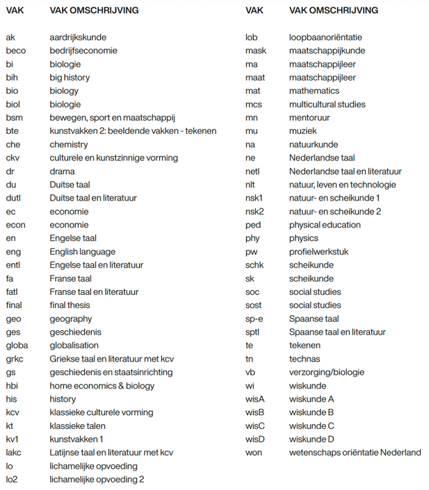 Verklaring afkortingen